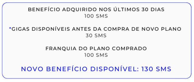 Caso a nova recarga seja feita após o término do período de validade do pacote/benefício, não haverá acúmulo de benefício referente ao pacote/benefício anteriores, pois os saldos remanescentes já teriam sido expirados.