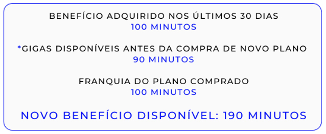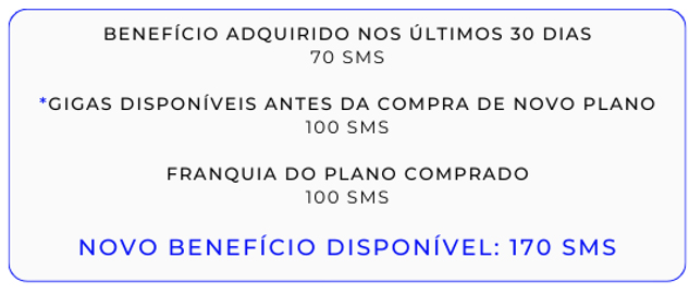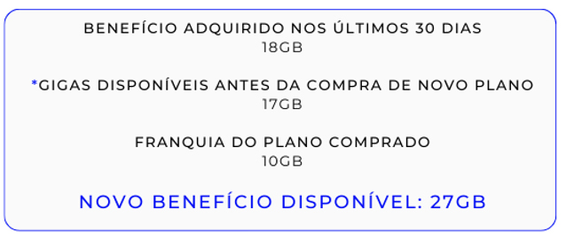 Caso a nova recarga seja feita após o término do período de validade do pacote/benefício, não haverá acúmulo de benefício referente ao pacote/benefício anteriores, pois os saldos remanescentes já teriam sido expirados.